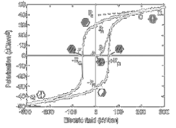 changed with an applied electrical or magnetic field in case of ferromagnetic materials (hysteresis curve). PZT and BaTiO 3 were the first commercial ferroelectric materials