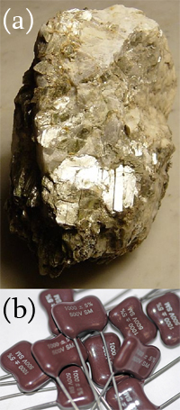 coefficients making them useless for commercial applications. A major breakthrough came with the discovery of the man-made perovskites (Pb,Zr)TiO 3 (PZT) and BaTiO 3 in the 1950s.